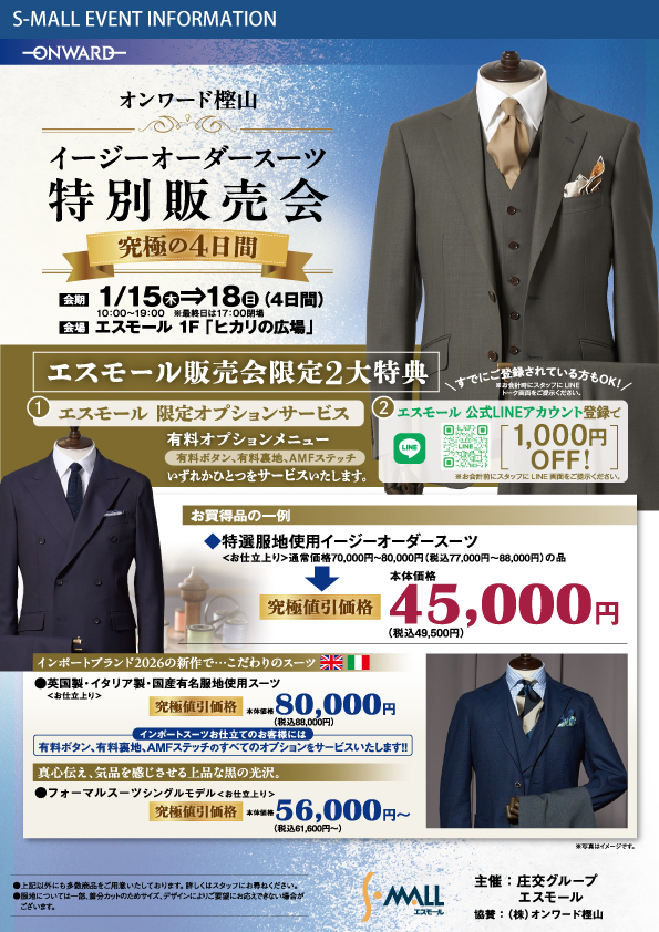 オンワード樫山のイージーオーダースーツがエスモールで特別にお買い求めいただけます!