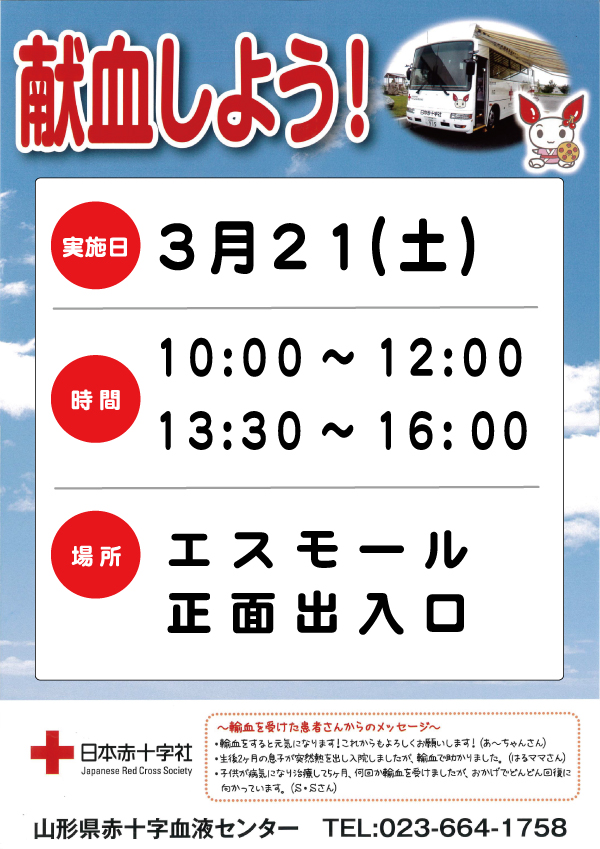 献血バスがきます!